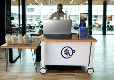 Experience the delight of a café at your corporate event, wedding, or any occasion with our mobile coffee bar or mimosa bar