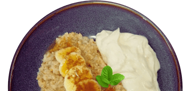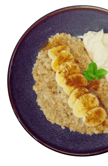 cooked oats with sliced banana, cinnamon, honey and milk with non-dairy milk add 15