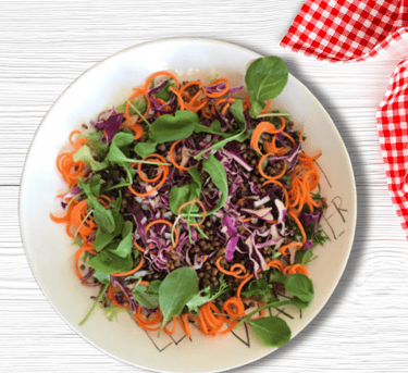 carrot, mix leaves, cucumber, shredded slaw, herbs, citrus, hummus, avo ( seasonal )